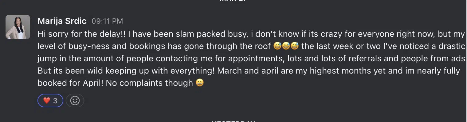 "I struggled with new clients during the pandemic... It's been 10 days into the campaign and I'm booked for 2 months!"