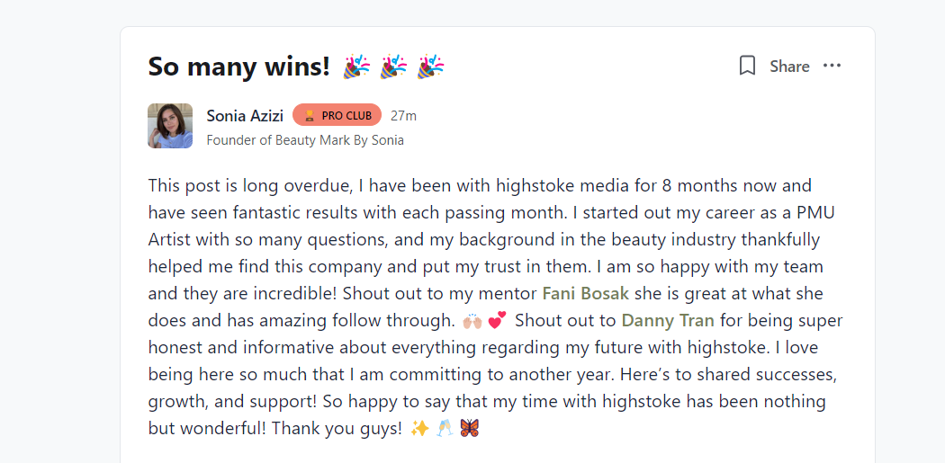 At Highstoke Media, we’ve helped over 1,600 PMU artists worldwide with hundreds of success stories... many generating consistent six and even seven-figure incomes.