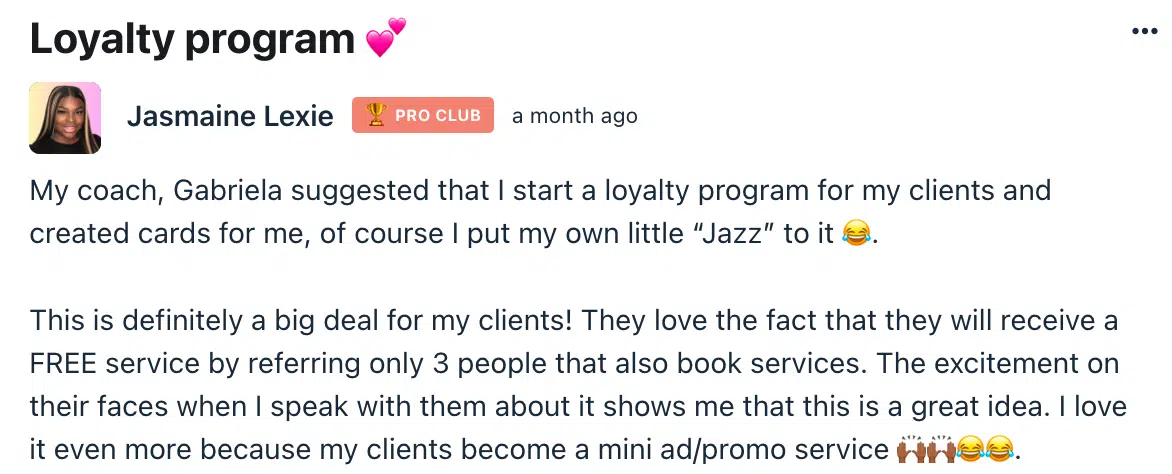 "I don't have to worry about posting or getting clients. I love the ideas they give me for Instagram posts; it's been very helpful!"