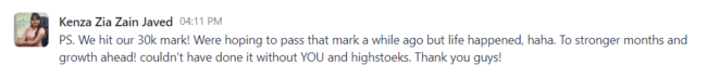 "I started with Highstoke just over a month ago, and one of my goals was to hit 10K. I'm on track to hit it this month, and I couldn't be more grateful and appreciative."